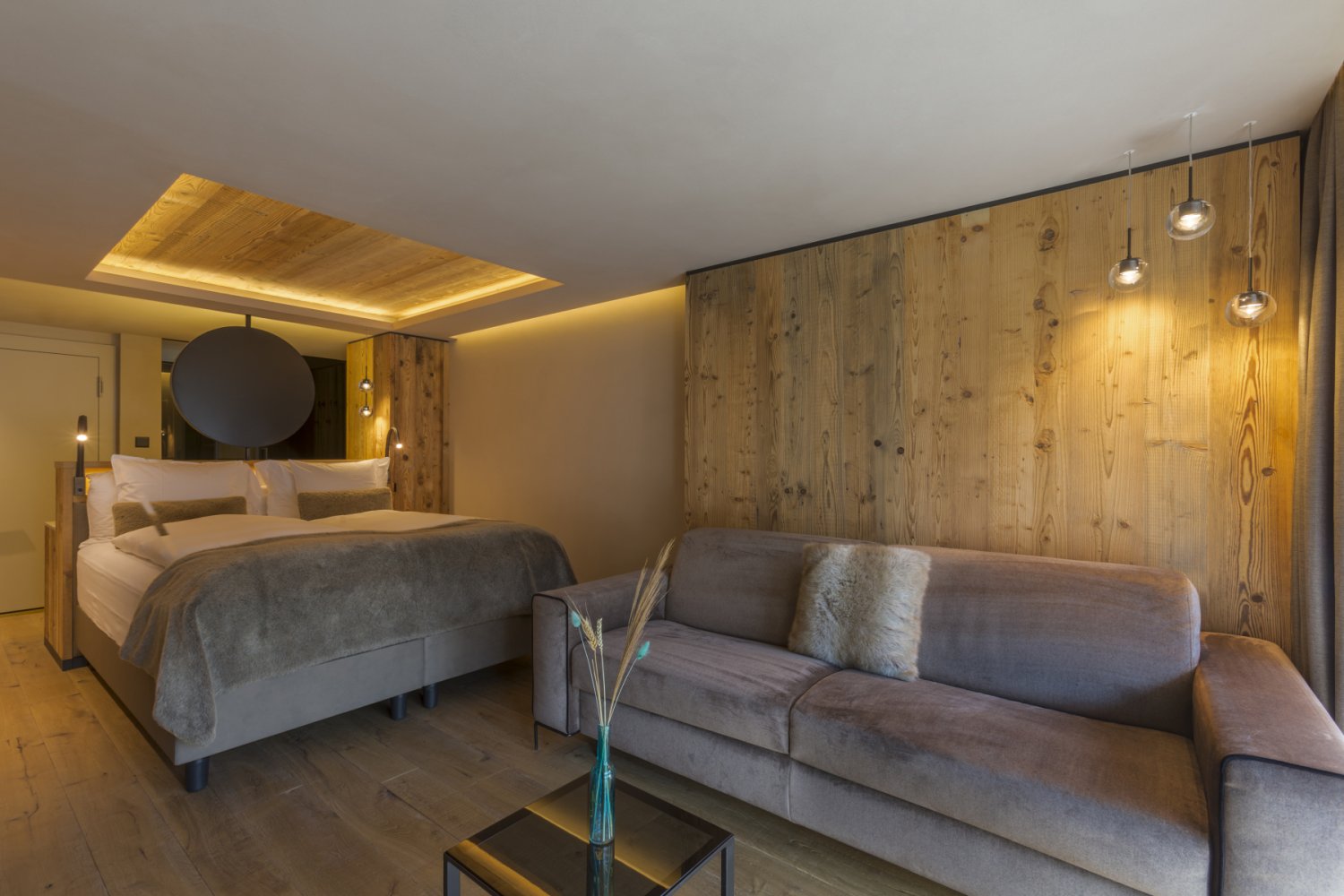 The newly designed Deluxe Rooms are furnished with high-quality materials and all bathrooms offer relaxation with a refreshing rain shower and light therapy by Gessi. They have a sofa, LCD TV incl. guest connect (Netflix etc.), telephone, bathroom with shower/bathtub, WC and hairdryer, toiletries, bathrobe, cuddly blanket, minibar, Nespresso coffee machine, kettle and safe.